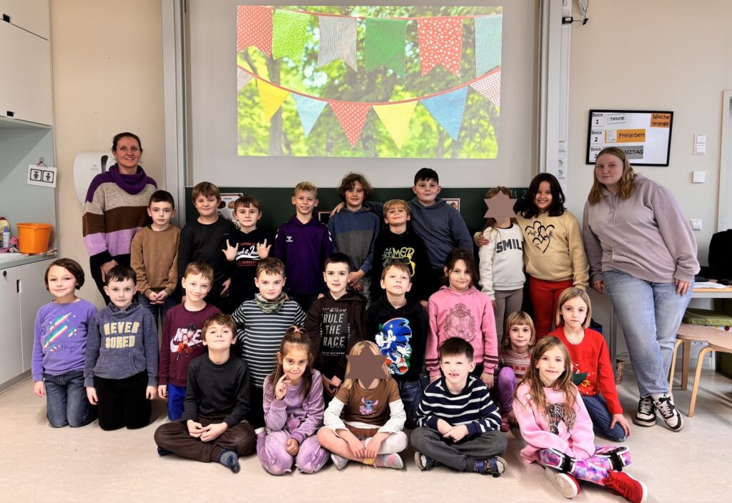 Hallo, wir sind die Kinder der Klasse 1/2d! 16 Jungen und 6 Mädchen lernen gemeinsam mit Frau Metel, Frau Jensch, Frau Adomat und Frau Zantke das Lesen, Schreiben und Rechnen sowie vieles mehr. Frau Endruhn ist unsere Erzieherin. Wie man sieht, sind wir eine ganz schön große Truppe. Unsere 13 Einschulungskinder genießen wieder die Unterstützung der Zweitklässlerpaten. Sicherlich werden wir auch in diesem Schuljahr gemeinsam viele tolle Sachen in und außerhalb der Schule erleben. Am 26. September besuchte uns eine Polizistin. Diese erklärte wichtige Dinge zum Thema: „Am und im Bus“. Demnächst erleben wir unsere erste Schulprojektwoche und am 13.10. 2025 erhalten unsere Kleinen – wie in jedem Jahr – eine Brotbüchse mit gesundem Essen. Unser 1. Wandertag führt uns zur Einstimmung in die Adventszeit nach Luckenwalde ins Theater. Dort erwartet uns ein schönes Märchen. Mal sehen, wie es dann weiter geht ….